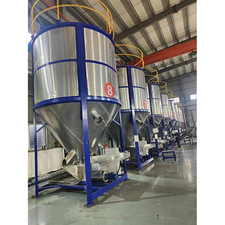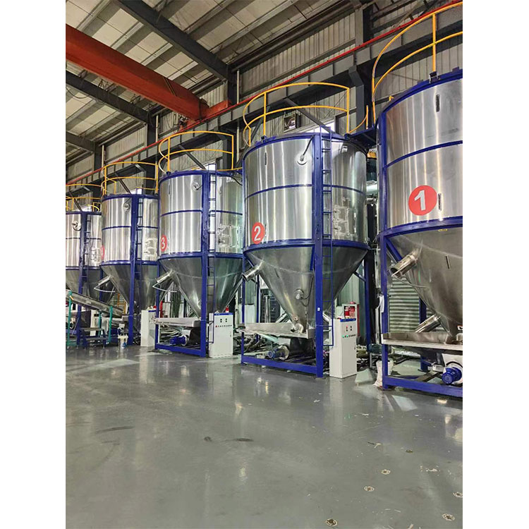 Pionowy mieszalnik tworzyw sztucznych jest w stanie wykonać równomierną mieszaninę dużych ilości materiałów w krótkim czasie mieszania, wykorzystując obrót łopatek do zbierania materiałów od dołu środka zrzutu do góry, odprowadzania przepływu materiału z powrotem na dno i zakończenia funkcji mieszania w krótkim czasie.